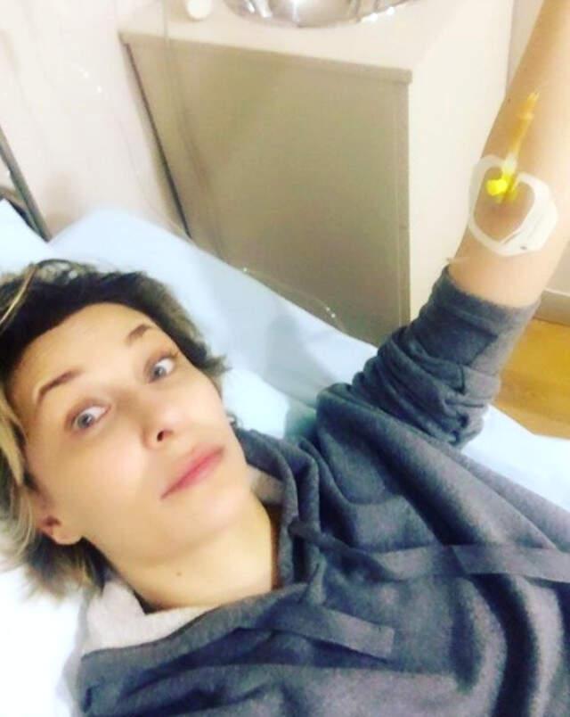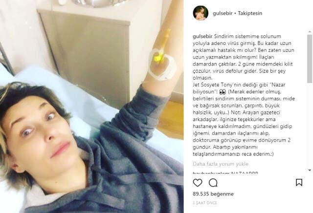 Hastane odasında kolundaki serumla çekilen fotoğrafını Instagram hesabından paylaşan Birsel, paylaşımına eklediği notta hastalığını nazara yordu.