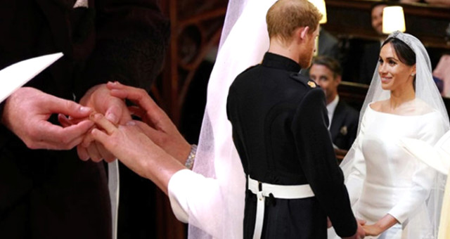 Uzun saçlarını toplayan Meghan Markle’ın duvağındaki pırıltılı taç da dikkat çekti.